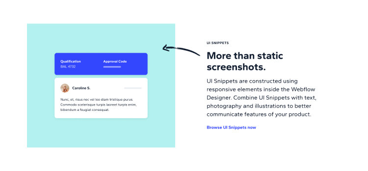 UI Snippets are constructed using responsive elements inside the Webflow Designer. Combine UI Snippets with text, photography and illustrations to better communicate features of your product.