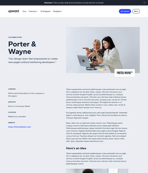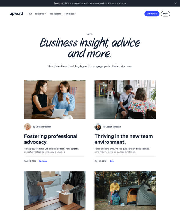 Upward comes out-of-the-box with all the layouts you’re likely to need when launching a complete website.